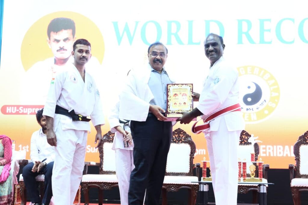 எங்கள் ஜென் இஷின்ரியு கராத்தே மாணவர்கள் – 18 வயதுக்குட்பட்டோர் பிரிவில் சென்செய் பி. பத்மநாபன் தீரஜின் மார்பின் மீது 101 பாராங்கற்கள் உடைக்கப்பட்டன., சென்செய்ஸ் பி. பிரணவ் மற்றும் எஸ். ரோஷன் ஆகியோர் தலா 101 தொகுப்பு ( sets) நெருப்பு ஓடுகளை உடைத்து சாதனை படைத்துள்ளனர்.