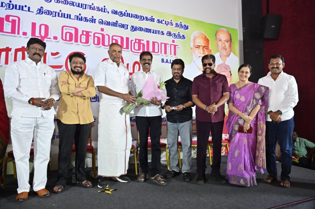 கலப்பை மக்கள் இயக்க நிறுவன தலைவரும், திமுக’வில் தன்னை இணைத்துகொண்டு அரசியல் களத்தில் கால் பதித்துள்ளவரும், நடிகர் விஜய்யின் முன்னாள் மேலாளருமான பி டி செல்வகுமார் அவர்களுக்கு திரையுலகம் சார்பில் கடந்த 23.1.2026 அன்று சென்னை வடபழனி பரணி ஸ்டுடியோவில் பாராட்டு விழா சென்னையில் நடைபெற்றது.