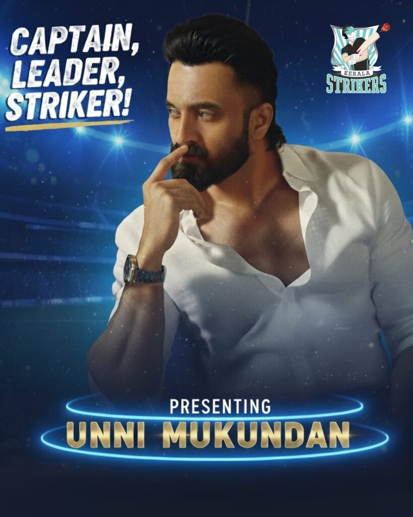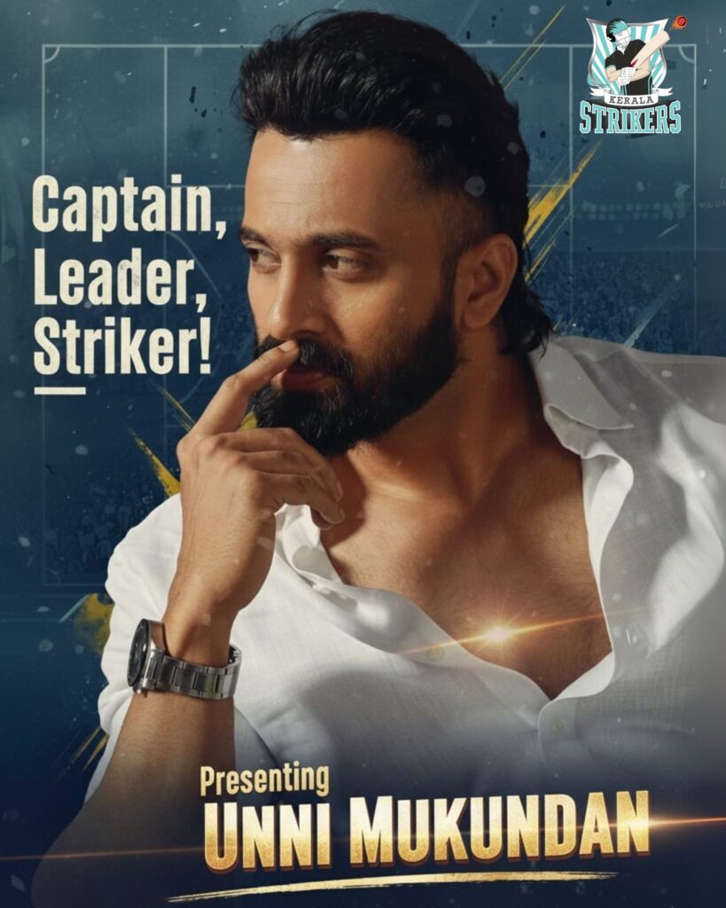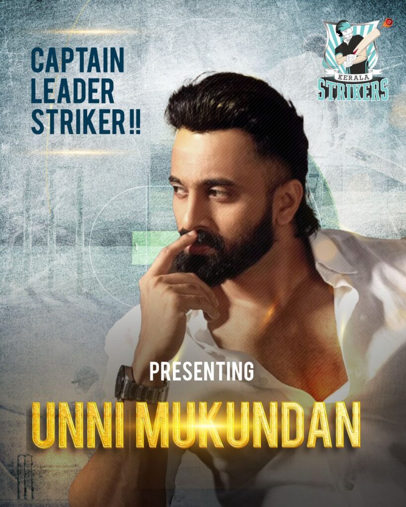 நடிகரும் கிரிக்கெட் ஆர்வலருமான உன்னி முகுந்தனை கேரளா ஸ்ட்ரைக்கர்ஸ் அணி தங்களது புதிய கேப்டனாக அறிவித்துள்ளது. இந்த அறிவிப்பை அணியின் இணை உரிமையாளர் ராஜ்குமார் சேதுபதி வெளியிட்டார். கிரிக்கெட் மீதான ஆர்வம் மற்றும் கேரளா ஸ்ட்ரைக்கர்ஸ் அணியுடனான நீண்ட கால உறவின் அடிப்படையில் உன்னி முகுந்தன் இந்த தலைமை பொறுப்பிற்கு தகுதியானவர் என்கிறார் ராஜ்குமார் சேதுபதி. மலையாள சினிமாவில் கொண்டாடப்படும் நடிகராக மட்டுமல்லாது, உன்னி முகுந்தனின் அனுபவமும் கிரிக்கெட் பற்றிய புரிதலும் நிச்சயம் அணியினருக்கு புது உற்சாகம் கொடுக்கும் என்கிறார்.