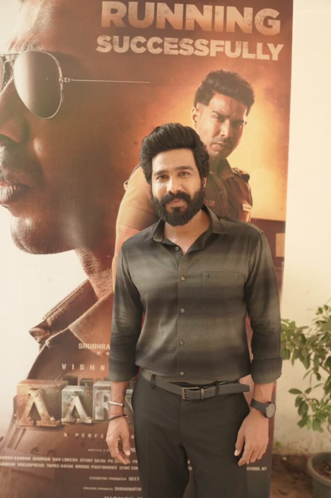 ஆர்யன் எனக்கும் மிகவும் ஸ்பெஷலான படம். என்னுடைய மகனின் பெயரில் எடுத்த படம். விஷ்ணு விஷால் ஸ்டுடியோஸில் எடுத்த மூன்றாவது தொடர் வெற்றிப்படம் . இது தமிழ் சினிமாவில் மிகவும் அரிது. என் மகனும் படம் பார்த்து மிகவும் சந்தோசப்பட்டார். படம் பார்த்துவிட்டு என்னைக் கட்டிப்பிடித்தார், அது எனக்கு மிகப்பெரிய விருது. 2023 ரிலீஸ் தேதி வைத்துவிட்டு இந்தப்படம் ஆரம்பித்தோம், ஆனால் சில காரணங்களால் அது தள்ளிப்போனது. ஆனால் இந்த இடைவெளியில் முழு உழைப்பைத் தந்து, இயக்குநர் பிரவீன் மிகப்புதுமையான படத்தைத் தந்துள்ளார். இந்தப்படத்தைப் பற்றி சில மாறுபட்ட கருத்துகளும் வந்தது, என்ன கிளைமாக்ஸ் வைப்பது என எங்களுக்குள் நிறைய விவாதங்கள் நடந்தது. அது பற்றிய விமர்சனங்கள் எங்களுக்கு உதவியாக இருந்தது. இனி படம் பார்ப்பவர்கள் புது க்ளைமாக்ஸை பார்ப்பார்கள், அது தான் பிரவீன் வைத்திருந்த கிளைமாக்ஸ். என் படங்கள் திரையரங்கத்தைத் தாண்டி ஓடிடியில் நல்ல வெற்றி பெறுகிறது. இது படத்திற்குப் படம் மாறுபடும். ஆர்யன் படமும் ஓடிடியில் நல்ல வரவேற்பைப் பெறும். தியேட்டரிலும் நல்ல வரவேற்பைப் பெற்றுள்ளது. என் திரை வாழ்க்கையில் மிகப்பெரிய ஓபனிங் இந்த படம் தான். இந்தப்படத்தில் எடிட்டிங் மிக முக்கியம் அதை சான் லோகேஷ் சிறப்பாக செய்தார். ஜிப்ரான் சார் கடைசியில் தான் வந்தார், இப்போது மாற்றிய க்ளைமாக்ஸுக்கு கூட மீண்டும் சிறப்பாக வேலை செய்து தந்தார். மானசா சௌத்திரி தந்த ஒத்துழைப்புக்கு நன்றி. நான் வேலை பார்த்ததில் என்னுடைய ஃபேவரைட் நடிகை ஷ்ரத்தா. மிக வித்தியாசமானவர். நிறைய சினிமா பற்றிப் பேசுவோம் அவருக்கு நன்றி. செல்வா சார் இப்படத்தில் நடிக்கப்போகிறார் என்பதே எனக்கு மிகுந்த மகிழ்ச்சியாக இருந்தது. அவர் நடிப்பு பிரமிப்பைத் தந்தது. சைக்கோவிற்கு இருக்கும் வரைமுறைகளை தன் நடிப்பால் உழைத்துள்ளார். நான் எதிர்பார்த்ததை விட 2000 மடங்கு சிறப்பான உழைப்பத் தந்துள்ளார். இயக்க்குநர்பிரவீனை இவ்வளவு காலம் காக்க வைத்தற்கு மன்னிப்பு கேட்டுக்கொள்கிறேன். அடுத்த படம் விரைவாகச் செய்ய வாழ்த்துக்கள். கட்டா குஸ்தி 2 விரைவில் வருகிறது. என் தம்பியுடன் ஒரு படம் செய்யவுள்ளேன், இயக்குநர் அருண்ராஜா காமராஜுடன் ஒரு படம் செய்கிறேன். அடுத்தடுத்து உங்களுக்குப் பிடித்த மாதிரி படங்கள் செய்வேன். அனைவருக்கும் நன்றி.