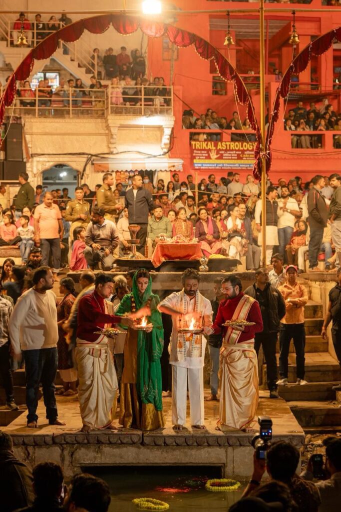 திரையரங்கு சந்திப்பிற்கு பிறகு, படக்குழுவினர் வாரணாசியின் தெய்வீக அழகை அனுபவித்தனர். புனிதமான காசி விஸ்வநாதர் கோவிலில் தரிசனம் செய்து, படம் வெற்றிபெற ஆசிகளை பெற்றனர். சூரியன் மறையும் நேரத்தில் தனுஷ், க்ரிதி சனோன் மற்றும் ஆனந்த் L ராய் ஆகியோர் தசாஸ்வமேத படித்துறைக்கு சென்று, புகழ்பெற்ற கங்கா ஆரத்தியை கண்டு ரசித்தனர். இது ரசிகர்களுக்கு ஒரு மெய்சிலிர்க்க வைக்கும் ஆன்மீக அனுபவத்தை அளித்தது.