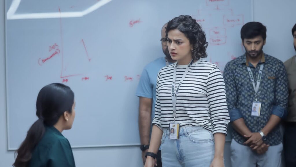 நடிகை ஷ்ரதா ஸ்ரீநாத் பகிர்ந்து கொண்டதாவது, “தனது வேலையில் முன்னேற வேண்டும் என்ற துடிப்பு மிக்க கேம் டெவலப்பர் காவ்யா என்ற கதாபாத்திரத்தில் நடித்திருக்கிறேன். சமூகவலைதளதங்களில் எதையும் தைரியமாக பேசுபவள் காவ்யா. இதனால் அவளுக்கு பாராட்டுகள் கிடைத்தாலும் அதைவிட அதிக வெறுப்பும் கிடைக்கிறது. இது அவளுக்கு தனிப்பட்ட வாழ்விலும் பிரச்சினைகளை ஏற்படுத்துகிறது. இதில் இருந்து தனது குடும்பத்தையும் சொந்தங்களையும் எப்படி காக்கிறாள் என்பதுதான் கதை. வேலையையும் தனிப்பட்ட பொறுப்புகளையும் குழப்பிக் கொள்ளும் பெரும்பாலான தற்கால மாடர்ன் பெண்களை காவ்யா கதாபாத்திரம் பிரதிபலிக்கும்”.