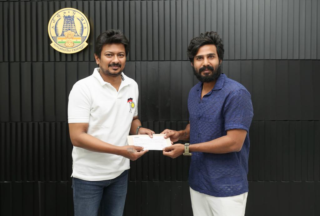 மிக்ஜாம் புயல் பேரிடர் நிவாரணப் பணிகளுக்காக முதலமைச்சரின் பொது நிவாரண நிதிக்கு ரூ. 10 லட்சம் காசோலையை விளையாட்டுத்துறை அமைச்சர் திரு.உதயநிதி ஸ்டாலின் அவர்களிடம் நடிகர் திரு. விஷ்ணு விஷால் அவர்கள் அளித்தார்.