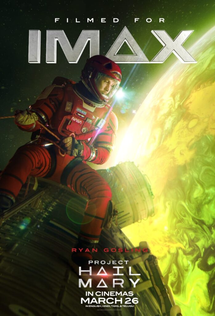 From Amazon MGM Studios and distributed by Sony Pictures International Releasing, Ryan Gosling starrer Project Hail Mary is releasing in Indian cinemas on 26th March 2026 in English, Hindi, Tamil and Telugu across IMAX and other premium large formats.