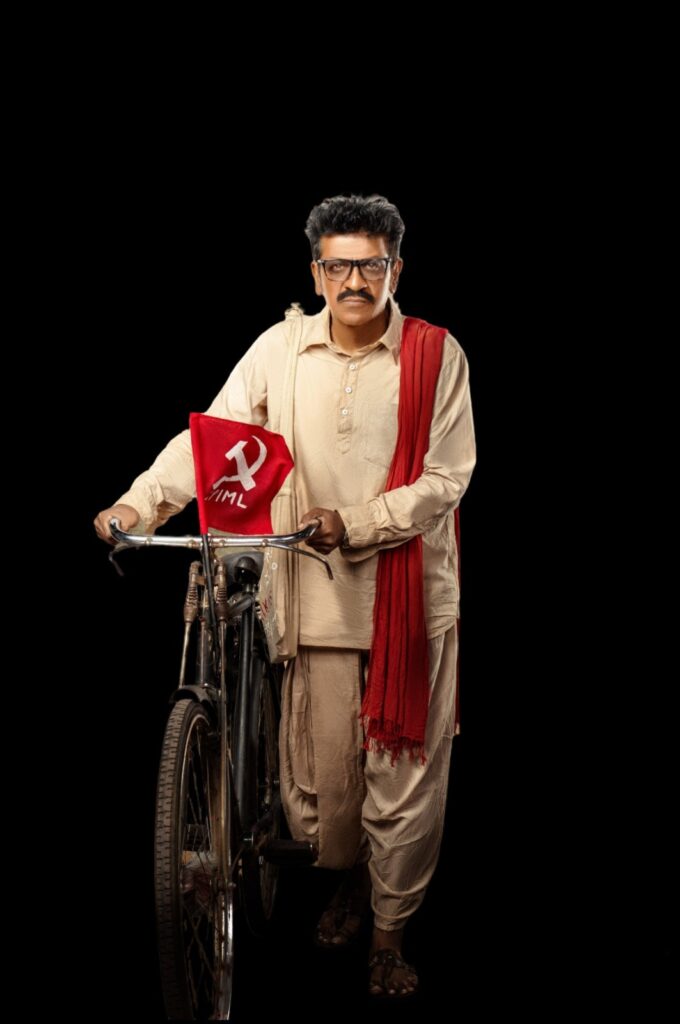 இன்று வெளியிடப்பட்ட ஃபர்ஸ்ட் லுக் போஸ்டரில், டாக்டர் சிவராஜ்குமார் எளிமையான அதே நேரம், வலிமையான தோற்றத்தில் காட்சியளிக்கிறார். கண்கண்ணாடி அணிந்து, வெள்ளை குர்தா –பைஜாமா மற்றும் தோளில் சிவப்பு துண்டு போர்த்திய நிலையில், சைக்கிளை தள்ளிச்செலும் காட்சியில், பின்னணியில் சட்டமன்றம் தெரிகிறது. சைக்கிளில் தொங்கும் நெல் மற்றும் சுத்தியல் சின்னம் கொண்ட சிவப்புக் கொடி, அவரது இடதுசாரி சிந்தனையையும், அரசியலின் தன்மையையும் வெளிப்படுத்துகிறது. கும்மடி நரசைய்யாவின் பணிவு மற்றும் உள்மன வலிமையை சிவராஜ்குமார் முழுமையாக வெளிப்படுத்தியுள்ளார்.