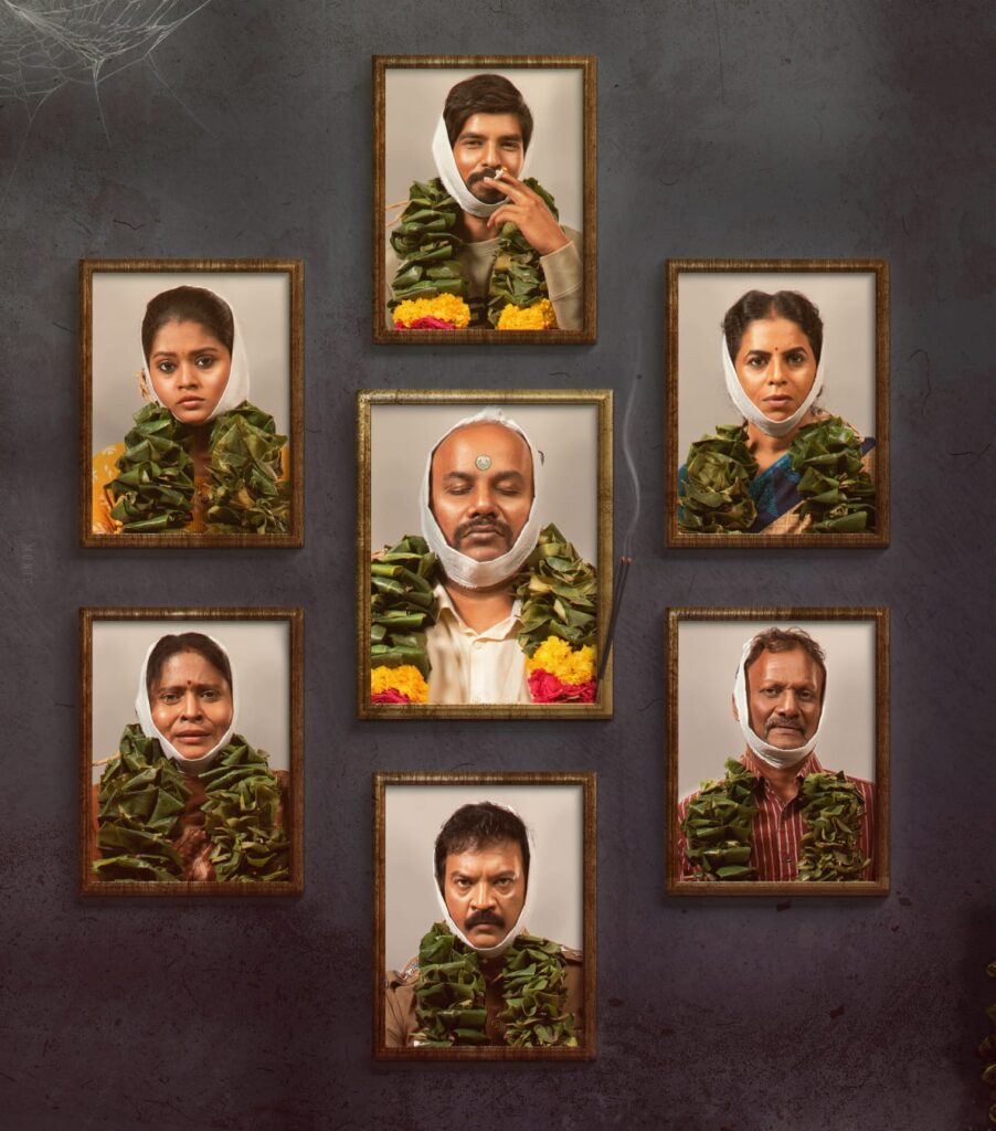சாவு வீடு எனும் தலைப்பே வித்தியாசமான சுவாரஸ்யத்தை ஏற்படுத்த, வீட்டுச் சுவற்றில் வித்தியாசமாக மாட்டி வைக்கப்பட்டிருக்கும் கதாப்பாத்திரங்களின் சாவுப்புகைப்படங்கள் நிறைந்திருக்கும், வித்தியாசமான ஃபர்ஸ்ட் லுக், பார்த்தவுடன் ஆவலைத் தூண்டுகிறது.