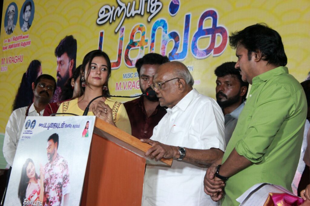 நிகழ்ச்சியில் எஸ்.பி.முத்துராமன் பேசுகையில், “சாதாரண அப்பரண்டீஸாக ஏ.வி.எம் சேர்ந்த நான் இயக்குநராக மட்டும் இன்றி, பிரமாண்டமான திரைப்படமான ‘சிவாஜி’ மூலம் இணைத் தயாரிப்பாளராக உயர்ந்திருக்கிறேன். இதற்கு காரணம் நான்கு விசயங்கள் தான். தொழிலை முழுமையாக கற்றுக் கொள்ள வேண்டும், கடுமையாக உழைக்க வேண்டும், நாம் வெற்றி பெறுவோம் என்ற நம்பிக்கையோடு பயணிக்க வேண்டும் மற்றும் ஒழுக்கமாக இருக்க வேண்டும். இந்த நான்கும் இருந்தால் வெற்றியை நாம் தேடிப் போக வேண்டாம், வெற்றி நம்மை தேடி வரும். 20 வருடங்களாக ஏ.வி.எம் ஸ்டுடியோவில் இருந்த ரகு இன்று சினிமாவில் சாதித்திருக்கிறார், என்றால் அவரது நம்பிக்கை தான் காரணம். அவரைப் போல் நம்பிக்கையோடு உழைத்தால் நிச்சயம் அனைவரும் வெற்றி பெறலாம். எனவே ரகுவின் இந்த புதிய படமும் மிகப்பெரிய வெற்றி பெற வேண்டும், என்று வாழ்த்துகிறேன்.” என்றார்.