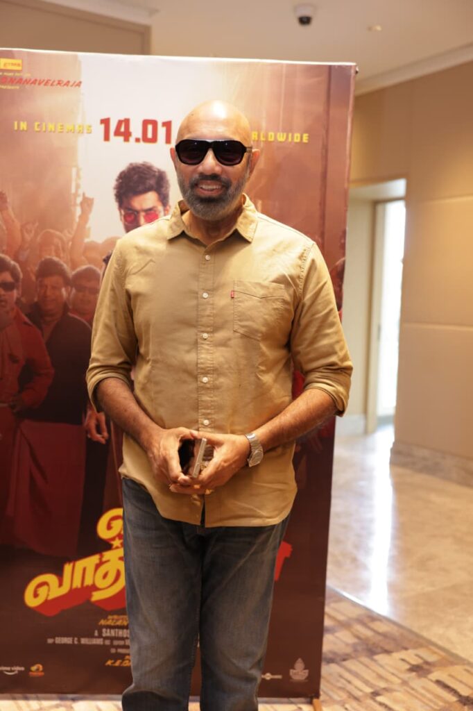 எம் ஜி ஆர் பற்றிப் பேசினால் அது தனியா ஒரு கதையாக போய் வ்டும். இந்த படத்தோட தயாரிப்பாளர் தம்பி ஞானவேல் ராஜா பற்றி ஒரு விஷயம் சொல்லவேண்டும். அவருடைய அப்பா ஒரு தீவிரமான எம் ஜி ஆர் ரசிகர். அவர் 110 தடவை நாட்டோடி மன்னன் படம் பார்த்ததாக சொன்னார். அவ்வளவு தீவிர ரசிகர். அப்படிபட்ட தயாரிப்பாளருக்கு அவர் இந்தப்படம் அமைந்தது மகிழ்ச்சி. கார்த்திக்கு முதல் படமே மிக சவாலான படம். வெளிநாட்டில் படிச்சிட்டு வந்து, அந்த மாதிரி ஒரு கிராமத்துக் கதாபாத்திரம் பண்ணுறது எளிமையானது இல்லை. ஆனால் அதைவிட கஷ்டமான விஷயம் இந்த வாத்தியார் கதாபாத்திரம். ஏனென்றால் இது ஒரு தலைவரின் பெயரோட சம்பந்தப்பட்ட கதாபாத்திரம். ஆனால் அதைத்தாண்டி இந்தப்படத்தில் எம் ஜி ஆர் பாடி லாங்குவேஜை கொண்டு வந்து அசத்திவிட்டார். கிருத்தி ஷெட்டி, ஷில்பா, தம்பி ஆனந்த்ராஜ், தம்பி சுந்தர் எல்லோரும் சிறப்பாக நடித்துள்ளனர். ஐம்பது வருடம் முன் கோவையிலிருந்து வந்த போது, பல் பெரிதாக இருக்கிறது என சிவக்குமார் அண்ணன் சிபாரிசில் டாக்டரிடம் சென்று பல்லைக் குறைத்தேன். ஆனால் நலன் இப்படத்தில் உங்கள் கதாப்பாத்திரம் வித்தியாசமாக வேண்டுமென பல் வைக்க வைத்து விட்டார். இப்படத்தில் நான் வில்லனாக நடித்துள்ளேன். எம் ஜி ஆரின் பொங்கல் படம் படம் போல இந்தப் பொங்கலுக்கு வா வாத்தியார் வருகிறது அனைவரும் கொண்டாடுங்கள் நன்றி.